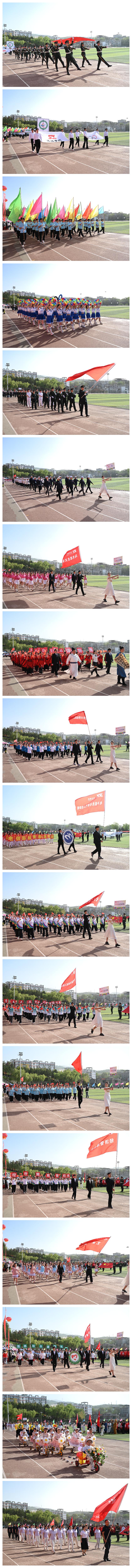 伴隨著《運動員進行曲》激昂的旋律,國旗護衛隊高擎五星紅旗莊嚴入場,退役士兵方陣、彩旗方陣、花環方陣、裁判員方陣以及各二級學院師生代表隊、附屬小學、附屬幼兒園和教職工代表組成的18個方陣依次走過主席臺。他們步伐鏗鏘、口號嘹亮,以飽滿的熱情和昂揚的姿態展現商院人的精神風貌。運動員代表趙希毓、裁判員代表祝河德分別向大會宣誓。