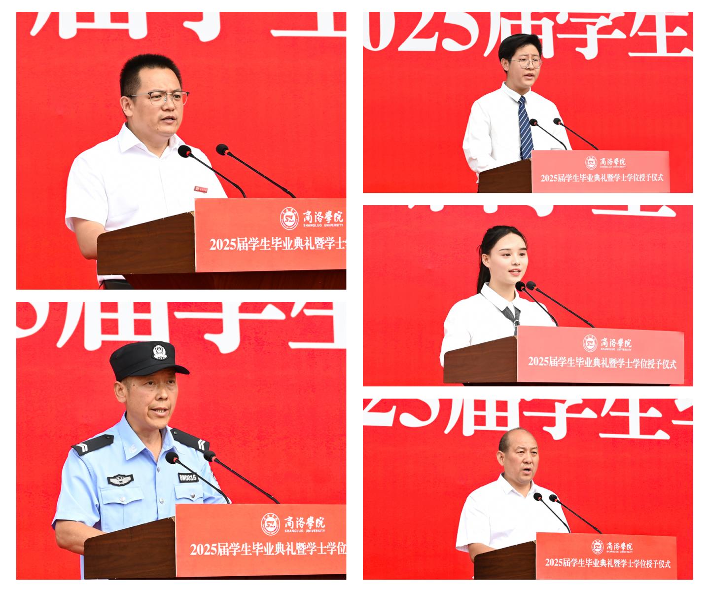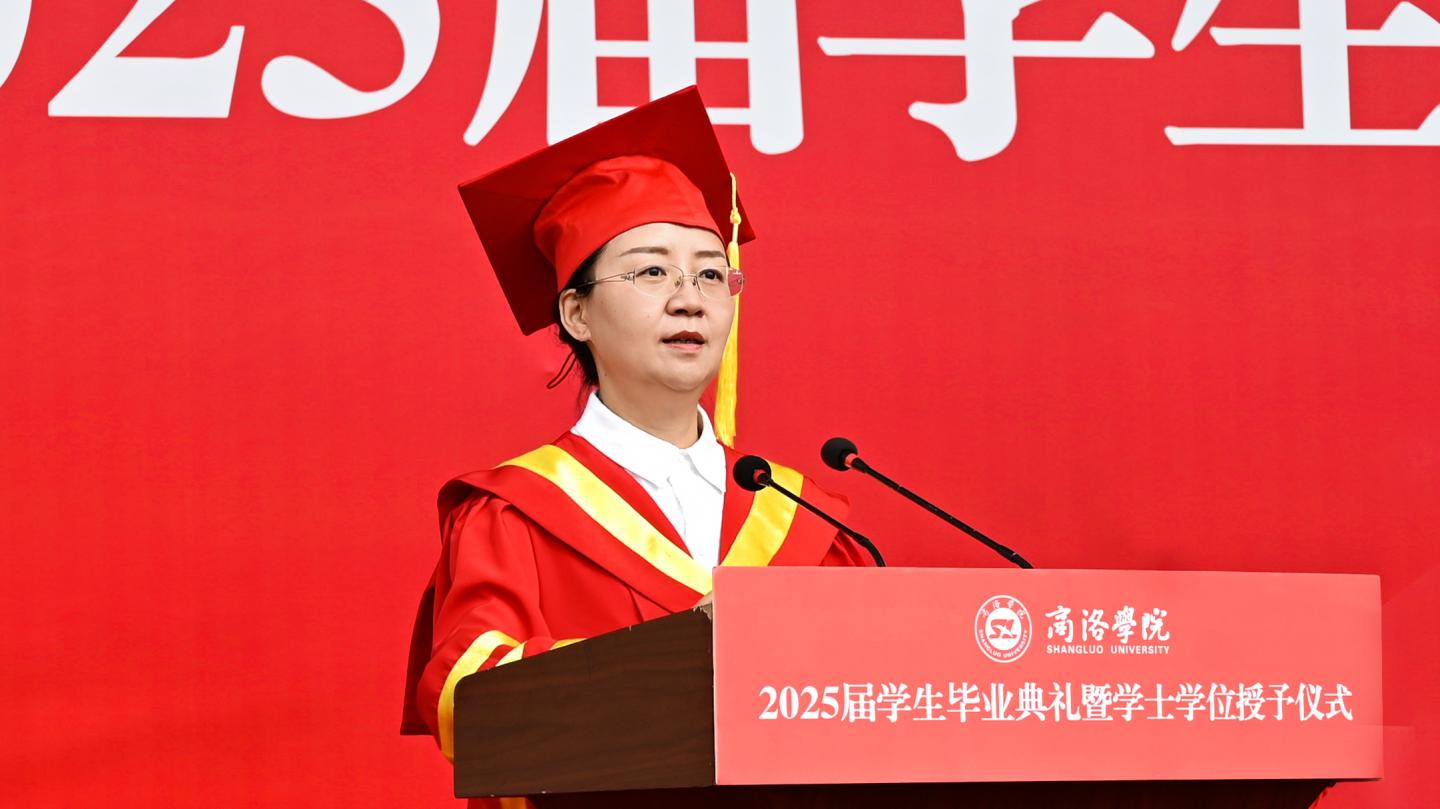 校長權(quán)雅寧以《矢志篤行勵青春 奮楫揚帆啟新程》為題發(fā)表了情真意切的講話。她指出,四年時光里,同學(xué)們與學(xué)校共成長、同進步,涌現(xiàn)出了一大批投身軍營、奔赴邊疆、銳意創(chuàng)業(yè)、考研深造、支援山區(qū)的優(yōu)秀學(xué)子,參與見證了學(xué)校黨建工作實現(xiàn)國字號突破、順利通過教育部本科教育教學(xué)審核評估、成功獲批碩士學(xué)位授予單位等最新成就和重大突破。她寄語全體畢業(yè)生,一要堅持“終身學(xué)習(xí)”,勇立時代潮頭。以跨界思維打破學(xué)科壁壘,用開放胸懷擁抱知識迭代,讓學(xué)習(xí)成為融入血脈的習(xí)慣。二要正確認(rèn)識自己,創(chuàng)造美好生活。不陷于“內(nèi)卷”的焦慮,也不沉溺“躺平”的虛無,傾聽內(nèi)心的聲音,找到屬于自己生命的獨特節(jié)奏與價值高峰。三要錘煉堅韌品格,直面人生挑戰(zhàn)。順境時不可驕縱自滿,逆境時切勿輕言放棄,以“風(fēng)雨兼程”的勇氣、“堅韌不拔”的意志、“披荊斬棘”的行動,去迎接每一次挑戰(zhàn),跨越每一道溝壑。