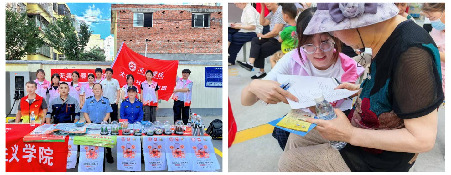 馬克思主義學院實踐團聯合市公安局商州分局,在名人街社區開展“反詐護袋”行動,解析詐騙案例,引導群眾護好錢袋子;開設“法治平安課堂”,普及禁毒常識,提升市民識毒防毒認知。