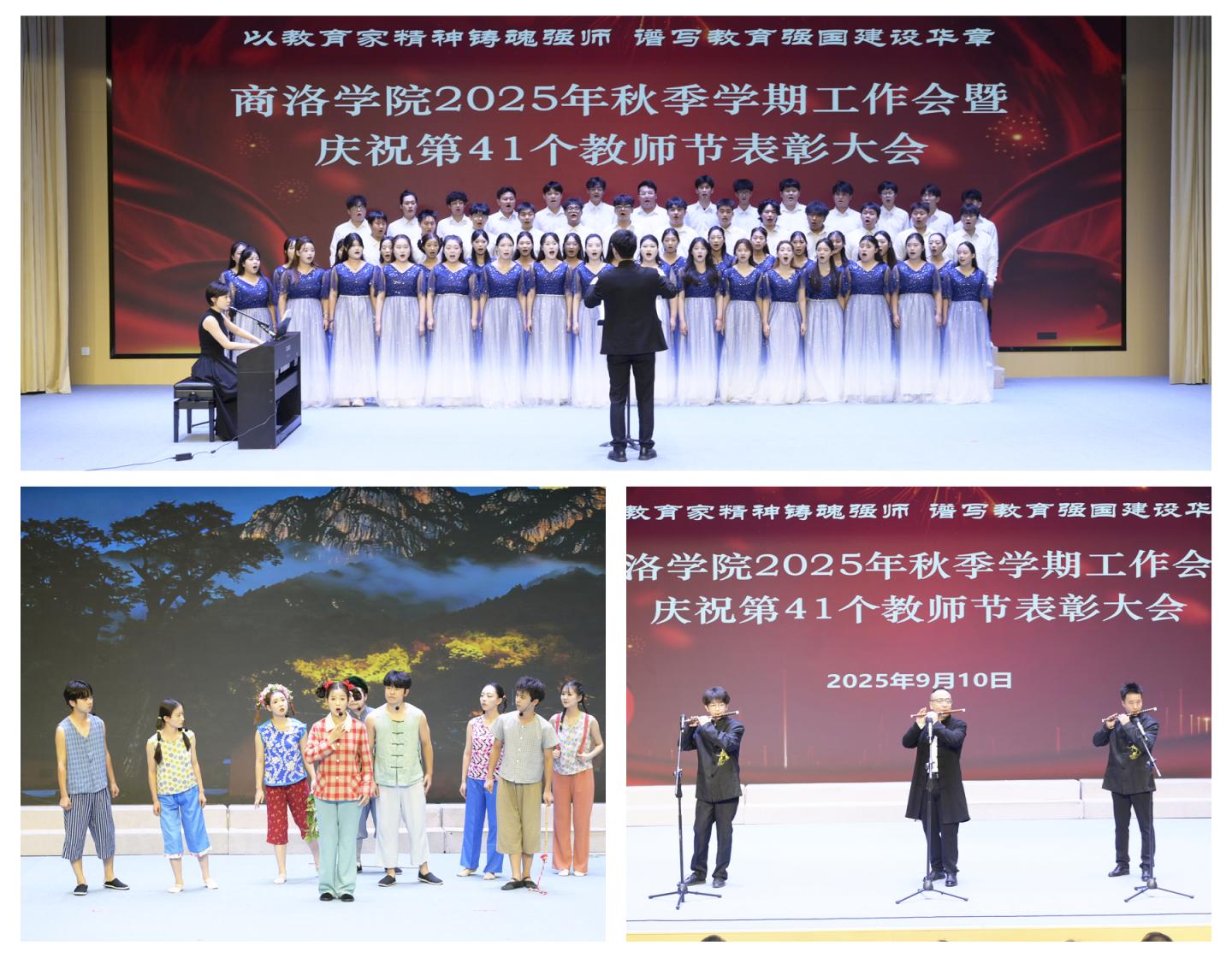 藝術學院師生會前表演了商洛花鼓《月亮光光》選段《追趕星星和月亮》、笛子合奏《揚鞭催馬運糧忙》、合唱《飛來的花瓣》等文藝節目,師生共同歡慶節日。