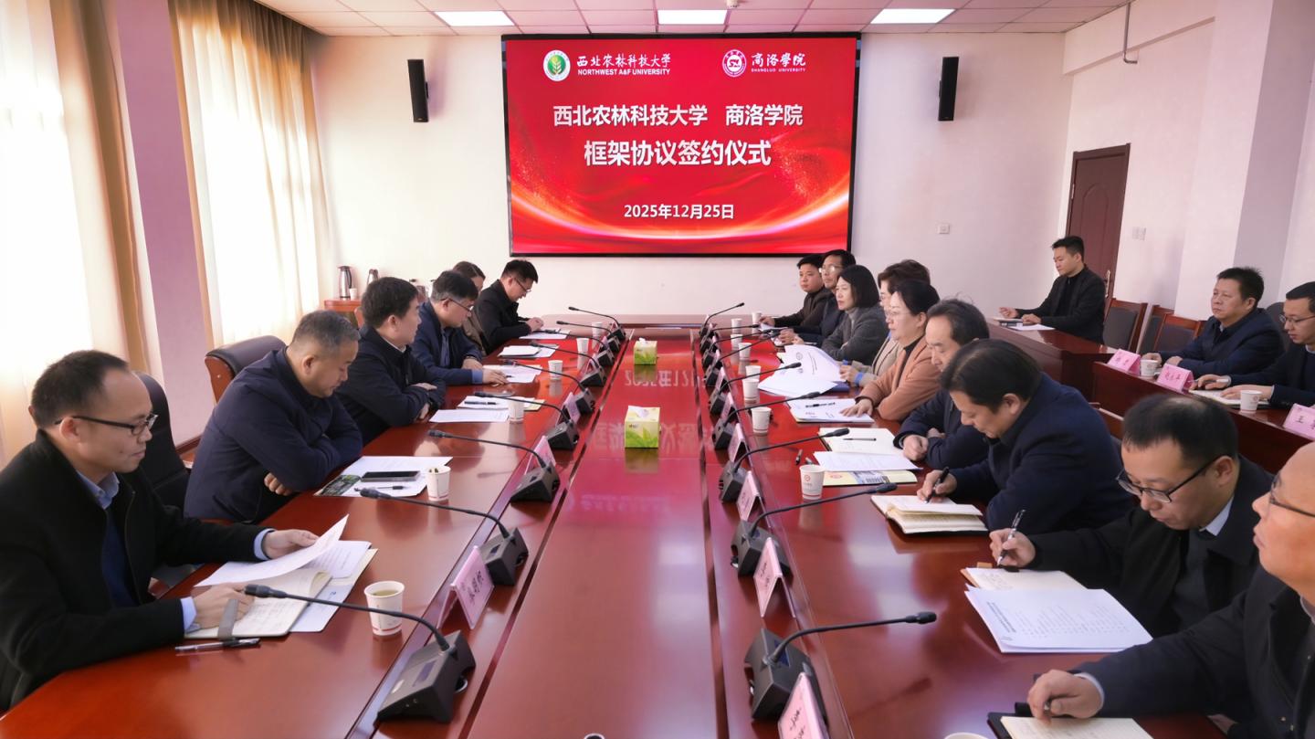 為深化校際合作、推動(dòng)資源共享、提升辦學(xué)水平與服務(wù)地方能力,12月25日,我校舉行“西北農(nóng)林科技大學(xué)支持商洛學(xué)院創(chuàng)新發(fā)展框架協(xié)議簽約儀式”,西北農(nóng)林科技大學(xué)副校長房玉林,我校校長權(quán)雅寧、副校長張向東、副校長程敏共同出席會(huì)議。會(huì)議由程敏主持。