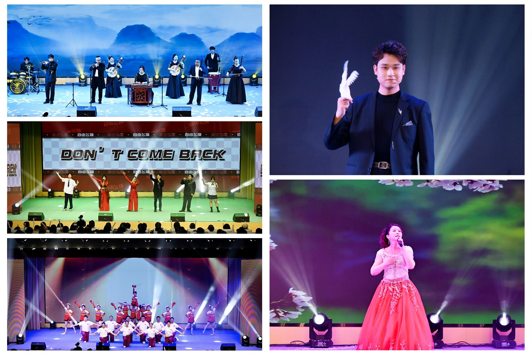 第二篇章“初心如磐·守杏壇”聚焦教育者的初心本色。藝術學院民樂合奏《浮光》清雅悠遠,象征師者光輝;教育科學學院與藝術學院帶來的歌曲串燒《流金歲月》帶領觀眾在熟悉的旋律中重溫時代記憶;健康管理學院的魔術表演《奇跡進行時》妙趣橫生,驚喜連連;獨唱《春天的芭蕾》用高亢的歌聲寄予了對美好未來的憧憬;由體育教學研究部教師和校健美操隊帶來的啦啦操《與時代共舞》,以動感十足的表演,淋漓盡致地展現了師生的蓬勃活力與昂揚斗志。