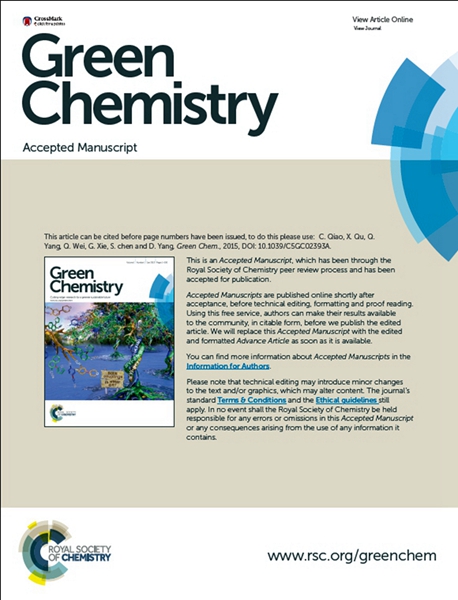 2015年,我校化學工程與現代材料學院喬成芳博士等撰寫的學術論文《Instant high-selectivity Cd-MOF chemosensor for naked-eye detection of Cu(II) confirmed using in situ microcalorimetry》在英國皇家化學會著名期刊《綠色化學》(Green Chemistry)發表。該期刊在2015年中國科學院SCI期刊分區表中屬于化學綜合類2區期刊,影響因子為8.02(DOI: 10.1039/c5gc02393a)。