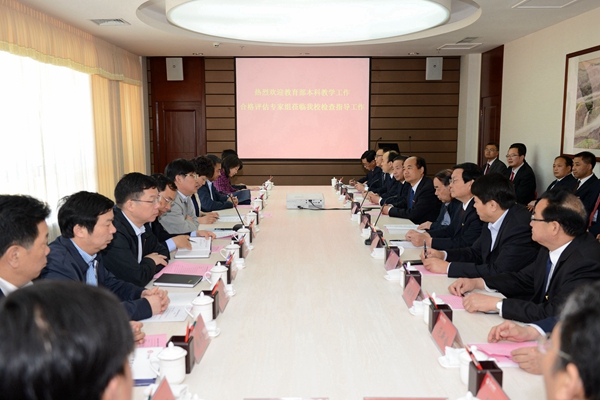 2015年5月11日至14日,教育部本科教學工作合格評估專家組一行8人進駐我校,通過深度訪談、課堂聽課、走訪考察、座談了解、調閱試卷論文、查閱相關資料等形式,對我校本科教學工作進行了全面考察, 對評建工作取得的成績給予肯定。