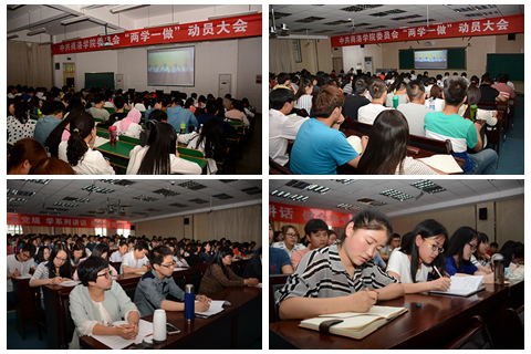 劉建林在講話中從“凝聚共識(shí),深刻領(lǐng)會(huì)‘兩學(xué)一做’學(xué)習(xí)教育的重大意義;聚焦主要內(nèi)容,扎實(shí)推進(jìn)‘兩學(xué)一做’學(xué)習(xí)教育;嚴(yán)抓落實(shí),確保‘兩學(xué)一做’學(xué)習(xí)教育取得實(shí)效”三個(gè)方面全面闡釋了“兩學(xué)一做”學(xué)習(xí)教育的重大意義、目標(biāo)任務(wù)和主要內(nèi)容,對(duì)我校黨員師生開展“兩學(xué)一做”提出了具體要求。他指出,在全體黨員中開展“學(xué)黨章黨規(guī)、學(xué)系列講話,做合格黨員”學(xué)習(xí)教育,是繼黨的群眾路線教育實(shí)踐活動(dòng)、“三嚴(yán)三實(shí)”專題教育之后,深化黨內(nèi)教育的又一次重要實(shí)踐,也是面向全體黨員從集中性教育活動(dòng)向經(jīng)常性教育延伸的重要舉措。在學(xué)校構(gòu)建“穩(wěn)基、提質(zhì)、增速,創(chuàng)新驅(qū)動(dòng)發(fā)展”的新常態(tài),全面實(shí)施本科教育的關(guān)鍵時(shí)期開展“兩學(xué)一做”學(xué)習(xí)教育至關(guān)重要,目的就是加強(qiáng)黨的建設(shè),要求全體黨員以學(xué)促做、知行合一,成為講政治、有信念,講規(guī)矩、有紀(jì)律,講道德、有品行,講奉獻(xiàn)、有作為的合格黨員,在實(shí)現(xiàn)個(gè)人價(jià)值的同時(shí)為學(xué)校發(fā)展做出貢獻(xiàn)。
