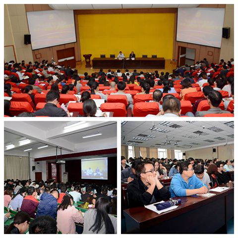 全校教職工黨員和學生黨員分別在圖書館二樓報告廳,一號教學樓2樓、3樓報告廳聆聽黨課。