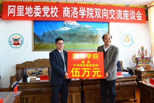 劉建林一行與中共西藏阿里地委黨校干部職工進行座談交流,并代表學校向阿里地委黨校資助5萬元,用于支持該校學科專業建設。西藏阿里地委委員、行署副專員王彪,阿里地委黨校常務副校長白瑪多吉出席座談會。座談會由阿里地委黨校副校長郭運良主持。