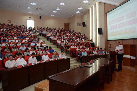 劉建林以“商洛學院的昨天 今天 明天”為題,從“四十年勵精圖治、升本十年風雨兼程、2015年厚積薄發”三個方面全面總結回顧了我校建校40年來取得的成就,并介紹了學校下一步工作思路和目標、發展路徑選擇與措施。“商洛學院是鑲嵌于商洛大地上的一張金色名片,是飄揚在丹江河畔上空的一道靚麗的風景線,她支持著商洛城市社會品質的提升,支撐著商洛區域社會經濟文化的可持續發展”、“商洛學院是我們的共同家園,是我們每個人發展的平臺和依靠”——這些鏗鏘有力的話語贏得了在座學生的高度認同,現場不斷爆發出熱烈的掌聲。