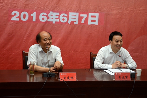 在談到加強校園基礎設施建設的話題時,劉建林指出,學校已經明確了三校區辦學布局,丹江校區和張村校區的征地建設事宜正在有條不紊進行,通過校地合作等方式建立了棣花實踐教學基地,教學用地和設施已經有了較大改善。2015年學校開工建設了總面積5萬平方米的綜合教學大樓、青年教師公寓和學生公寓,最近已經順利封頂。假以時日,我校的校園面貌一定會有一個巨大的變化。