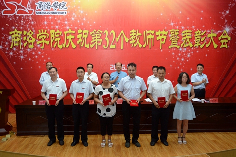 在莊嚴的國歌聲中,慶祝暨表彰大會開始。校黨委副書記彭虎軍宣讀了表彰決定。出席大會的校領導為獲得先進集體榮譽稱號的化學工程與現代材料學院、生物醫藥與食品工程學院、語言文化傳播學院、教務處、教學評估中心5個單位,獲得優秀教師榮譽稱號的冀玉良等21人,獲得優秀教育工作者榮譽稱號的何念武等9人,獲得師德先進集體榮譽稱號的城鄉規劃與建筑工程學院、經濟與管理學院、學生處3個單位,獲得師德先進個人榮譽稱號的黃元英等10人頒獎。