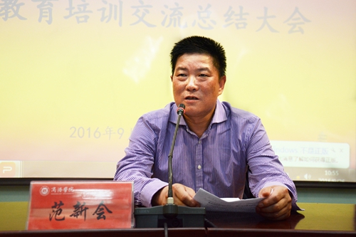 范新會在講話中指出,在我校“十三五”起步階段、各項工作全面快速發展的時期舉辦基層黨組織書記“兩學一做”學習教育培訓班,具有重要意義。培訓及時,安排周密,組織到位,收獲較大,達到了預期效果。范新會代表校黨委對參訓學員提出三點要求:一要借此學習機會,進一步深入推進“兩學一做”,充分領會“兩學一做”精神,將精神貫穿到實際工作中去;二要將培訓成果應用到基層黨建中,加強學校黨的建設;三要努力做好基層黨建工作,充分發揮基層黨組織的戰斗堡壘作用,發揮廣大黨員模范帶頭作用,團結帶領師生為學校改革發展做出新的貢獻。