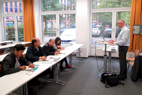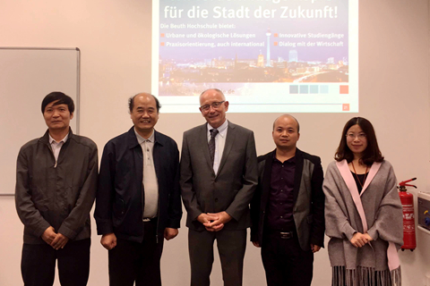 在德國柏林應用科技大學,劉建林一行先后前往兩個分校區,分別與Hoffjann教授和Kammasch教授在應用型人才培養過程中的教學質量管理的模式、管理質量管理的模式、工程教育及其教學法、應用型教師的培養等方面開展了深入交流和探討,了解了《博洛尼亞宣言》后歐洲高等教育體系的改革和建設成果。