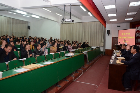 大會號召廣大教職工積極行動起來,在校黨委的領(lǐng)導(dǎo)下,高舉中國特色社會主義偉大旗幟,全面貫徹落實黨的十八大精神和習(xí)近平總書記系列重要講話精神,進一步解放思想,與時俱進,開拓創(chuàng)新,深化改革,扎實工作,為把我校建成一流應(yīng)用型本科院校而努力奮斗!