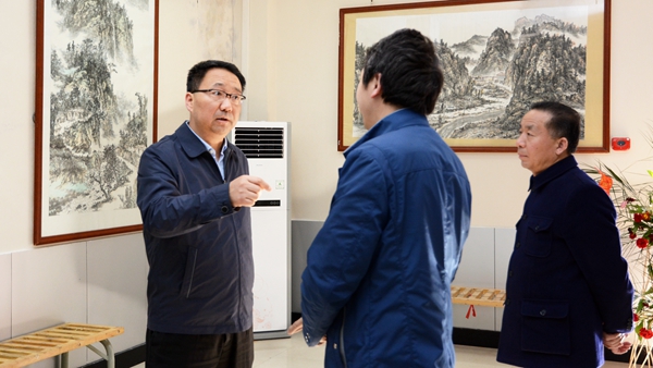 4月12日下午,黨委書記龍治剛、紀委書記王思懷來到學校藝術展廳,興致勃勃地參觀了張長林山水寫生暨學生美術作品展。