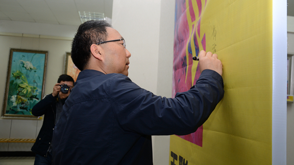 龍治剛在畫展開幕式上作了講話,要求藝術學院師生進一步凝練秦嶺畫派創作方向,不斷創作藝術精品,擴大秦嶺畫派和教師的社會影響。在藝術學院負責人和王聰指導教師的陪同下,他興致勃勃地參觀了王聰的作品,了解了王聰的學習創作情況,針對具體作品進行了點評,并親筆簽名留念。