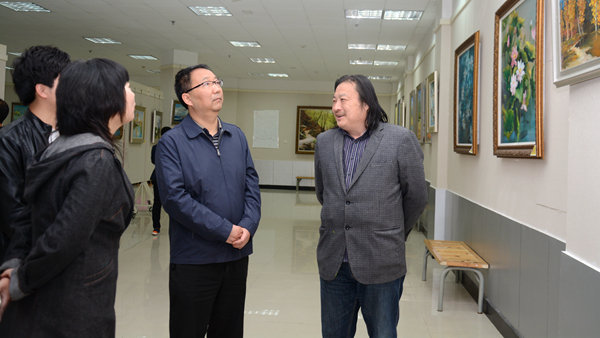 4月17日,藝術學院美術專業學生王聰“我心我塑” 畢業油畫展在藝術展廳拉開帷幕,校黨委書記龍治剛參觀了畫展。龍治剛在參觀中對王聰的創作水平給予了肯定,并勉勵他抓住重點,大膽突破,創作出更好的作品。