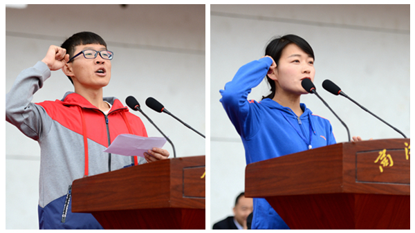 運動員代表吳飛、裁判員代表張馨嬌分別代表全體運動員、裁判員宣誓。