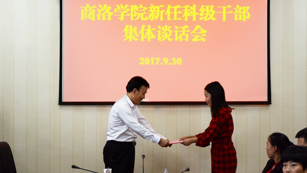 會上,黨委組織部部長郭瑾宣讀了《中共商洛學院委員會關于李川川等17位同志任職的通知》和《商洛學院關于李晶晶等29位同志任職的通知》。新任科級干部代表趙萍作了表態發言。