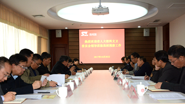10月25日,陜西省人大教科文衛(wèi)委員會主任楊希文一行來我校視察。省政府學(xué)位委員會秘書長袁寧,商洛市副市長武文罡、商洛市人大教科文衛(wèi)委員會主任郭菊賢陪同視察。