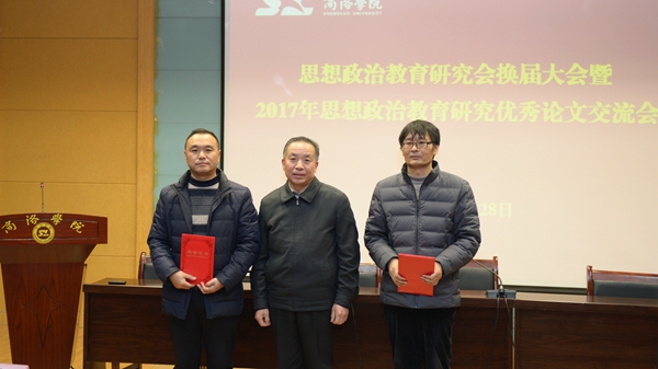 會議表彰了2017年思想政治教育研究優秀論文。王思懷、彭虎軍、左曉民分別為獲得特等獎、一等獎、二等獎的論文作者頒發了榮譽證書。