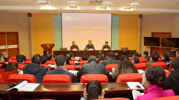 龍治剛結(jié)合我校實際,就貫徹落實全國、全省加強和改進高校思想政治工作座談會精神提出四點要求:一要提高政治站位,充分認識加強和改進思想政治工作的特殊重要性。做好思想政治工作,是一項重大的政治任務(wù)和戰(zhàn)略工程,事關(guān)“為誰培養(yǎng)人”“怎樣培養(yǎng)人”“培養(yǎng)什么樣的人”等根本性問題,事關(guān)紅色江山傳給誰、人民政權(quán)誰來守的重大問題,對于加強黨的領(lǐng)導(dǎo),具有十分重要而深遠的意義。二要明確重點任務(wù),落實工作措施。要切實抓好理論武裝工作,認真學(xué)習(xí)黨的十九大精神,把學(xué)習(xí)領(lǐng)會習(xí)近平新時代中國特色社會主義思想擺在突出位置,牢固樹立共產(chǎn)主義遠大理想和中國特色社會主義共同理想,增強“四個意識”,堅定“四個自信”。要把培育和踐行社會主義核心價值觀融入到教書育人全過程,積極探索加強家國情懷、法治意識、社會責(zé)任意識教育的新途徑、新形式,評樹身邊典型,進一步弘揚愛崗敬業(yè)、無私奉獻的高尚師德。要加強思想政治理論課建設(shè),充分發(fā)揮思想政治理論課主渠道作用,把思政理論課真正建設(shè)成為學(xué)生真心喜愛、終身受益、畢生難忘的優(yōu)秀課程。加強對課堂教學(xué)和各類思想文化陣地的建設(shè)管理。堅持“學(xué)術(shù)研究無禁區(qū)、課堂講授有紀(jì)律、公開言論守規(guī)矩”,進一步加強哲學(xué)社會科學(xué)報告會、研討會、講座、論壇和讀書會、學(xué)術(shù)沙龍等的引導(dǎo)和管理,嚴格落實“一會一報”“一事一報”制度。三要創(chuàng)新方式方法,提升思想政治教育感召力與實效性。要沿用好辦法,改進老辦法,探索新辦法,切實抓好理念創(chuàng)新、手段創(chuàng)新和工作創(chuàng)新,更好地體現(xiàn)時代性、把握規(guī)律性、富于創(chuàng)造性,推動思想政治工作改革創(chuàng)新。要把解決思想問題與解決實際問題結(jié)合起來,讓思想政治教育始終帶著溫度、冒著熱氣,潤物無聲地給學(xué)生以人生啟迪、智慧光芒和精神力量。四要加強組織領(lǐng)導(dǎo),完善工作機制。緊緊圍繞立德樹人根本目標(biāo),站在全校一盤棋的高度,整合各種資源,形成協(xié)同育人的工作機制。全校黨員干部、全體教職工都要圍繞學(xué)生、關(guān)照學(xué)生、服務(wù)學(xué)生,提高育人的使命感、責(zé)任感,守好一段渠、種好責(zé)任田。各級黨組織要始終肩負起主體責(zé)任,提高做思想政治工作能力,把思想政治工作納入黨建工作和意識形態(tài)工作責(zé)任制,層層傳導(dǎo)壓力、層層抓好落實。