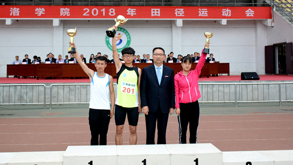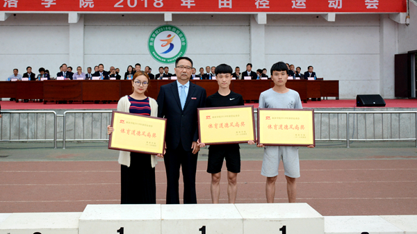 在熱烈的掌聲中,黨委書記龍治剛為團體總分前三名、體育道德風尚獎獲獎學院頒獎。紀委書記王思懷、黨委副書記彭虎軍分別為男子總分前三名、女子總分前三名獲獎學院頒獎。