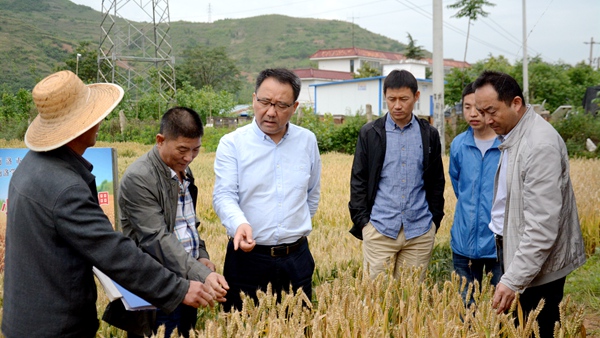 在張村校區(qū)試驗站,小麥顆粒飽滿、玉米長勢喜人、桔梗郁郁蔥蔥,一片生機(jī)勃勃的景象。校領(lǐng)導(dǎo)逐一仔細(xì)察看了小麥、玉米和桔梗的長勢,詳細(xì)詢問了小麥和中藥材新品種選育情況,聽取了我校小麥育種專家于浩世的匯報。校領(lǐng)導(dǎo)們指出,選育豐產(chǎn)抗逆性優(yōu)良的作物新品種是我校服務(wù)地方發(fā)展的重要工作,希望生物學(xué)院進(jìn)一步加大對育種工作的支持力度,加強(qiáng)團(tuán)隊建設(shè),力爭多出成果。