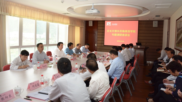 5月24日,中共陜西省委常委、宣傳部部長莊長興在商洛市委副書記、市長鄭光照,市委常委、宣傳部部長馬生龍的陪同下來我校調研,聽取我校工作匯報,深入丹江校區進行考察。校黨委書記龍治剛、校長范新會陪同調研。