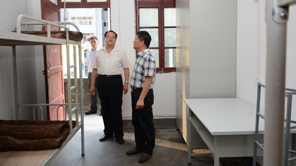 8月31日,校長范新會,副校長魏書堂、劉勇在黨政辦公室、教務處、資產管理處、后勤保障處、信息中心負責人的陪同下深入學生宿舍、新建綜合大樓等場所,檢查開學準備情況。