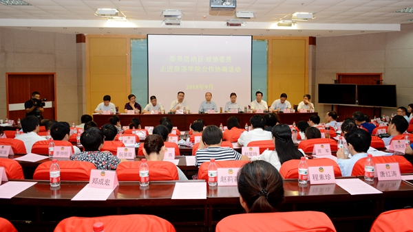 商洛市政協主席高健在講話中對近年來我校建設所取得的成績、先進的辦學理念、根植地方的辦學特色表示贊同和支持。他指出,商洛學院多年來心系商洛發展,為“三個商洛”的建設做出了重要貢獻,加快學校發展是全市人民共同關注的重要主題,廣大政協委員應聚焦商洛學院,關心商洛學院發展,自覺將履職與支持院校發展相結合。他還就深化此次活動主題提出了三點意見:一是各級各方面要深入貫徹習近平總書記關于加強和改進人民政協工作的指導精神,穩步推進政協工作向前發展;二是各級各方面要主動履職盡責,確保政協委員充分發揮模范帶頭作用、橋梁紐帶作用、心系群眾的優良作風以及委員自身的行業特點和優勢,增強委員意識,積極推進商洛市各項事業發展;三是各級各方面要心系院校發展,主動獻智出謀,積極助推學校各項工作的部署和落實,以實際行動為商洛教育事業發展作出貢獻。