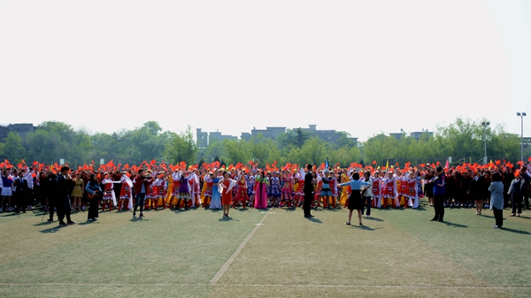 開幕式文體表演亮點頗多,精彩紛呈。我校航模隊與商洛市航空運動協會夢想飛行表演隊的航模表演率先開場,航模飛機在激昂的音樂聲中搏擊長空,升降翻轉,劃出一道道優美的弧線。建工學院學生以紅扇跳勁舞,龍虎相隨,青春激情,以歡快的舞姿、動感的隊形充分展現青春活力。化材學院學生用熱情歡快的啦啦操和“1949”“70”的隊形,表達對祖國深深的熱愛與誠摯的祝福。數計學院學生以整齊優雅的華爾茲雙人舞,展現學子儒雅優秀的一面,用“SLXY"圖樣的隊形表達自己對學校美好明天的祝福。藝術學院學生身著藏族、傣族、蒙古族、佤族、維吾爾族,朝鮮族、苗族等多個民族服裝,結合現代舞蹈動作,在愛我中華的樂曲中展現中華民族多元文化風采和我校學子的勃勃生機。