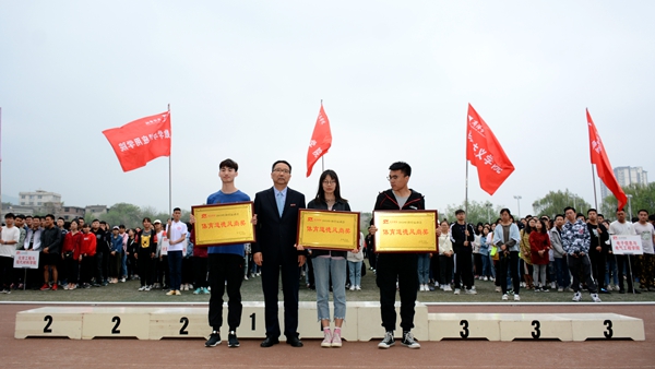 在熱烈的掌聲中,龍治剛為獲得體育道德風尚獎的學院頒獎,范新會為團體總分前三名獲獎學院頒獎,王思懷、劉寶盈分別為男子總分前三名與女子總分前三名獲獎學院頒獎。