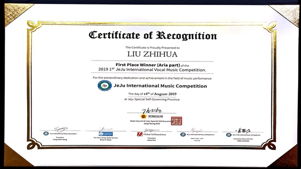 本次大賽由韓國濟州特別自治省政府主辦,全球藝術院、韓國文化藝術家協(xié)會及韓國漢拿大學協(xié)辦。來自中國、美國、俄羅斯、韓國、加拿大、土耳其等國家的300余名選手參加了比賽。比賽分聲樂、鋼琴、器樂三個類別。劉志華參加了聲樂類比賽,演唱了《偷灑一滴淚》、《星光燦爛》兩首歌劇詠嘆調(diào),經(jīng)兩輪激烈角逐,最終獲獎。