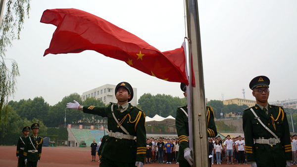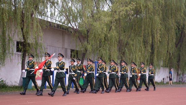 在雄壯的國歌聲中,建工學院師生整齊列隊,舉行新學期第一次升國旗儀式,學生代表李斌以《新學期,新開始,新征程》為題作國旗下演講。