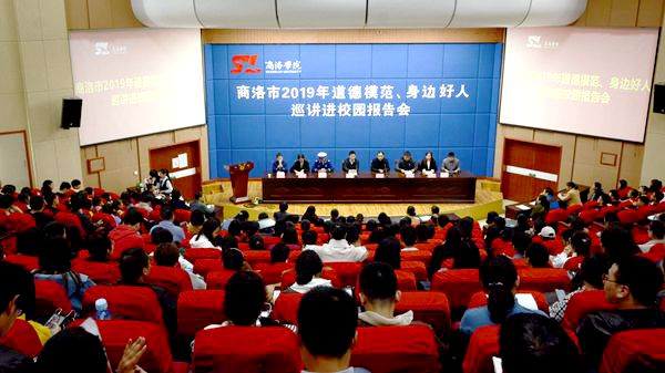 為認真貫徹落實《新時代公民道德建設實施綱要》,汲取榜樣力量,提高道德建設水平,11月7日,商洛市2019年道德模范、身邊好人巡講團走進我校,為師生作了一場精彩感人的報告。校黨委副書記彭虎軍,商洛日報社副社長、商洛市創文辦副主任唐淑君出席報告會并講話。