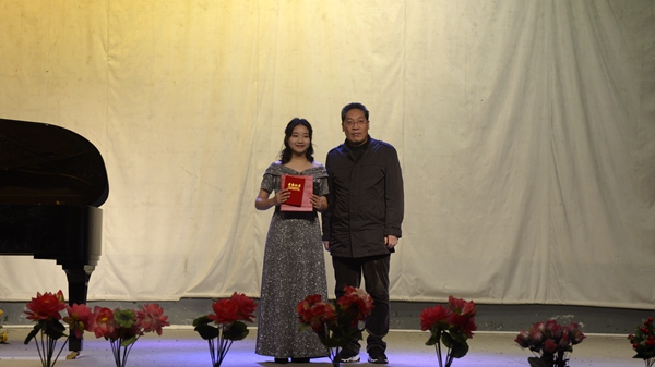 本次藝術活動旨在深入貫徹全國教育大會精神,用多彩的藝術形式引導大學生堅定理想信念,營造良好校園文化氛圍。活動包括好聲音、書畫、誦讀三個比賽環節,其中好聲音、書畫比賽分為專業組和非專業組兩個比賽組別,經過激烈角逐、現場打分和綜合評比,最終好聲音比賽《望月》作品獲得專業組一等獎、《出現又離開》作品獲得非專業組一等獎;書畫比賽《自畫像》作品獲得專業組一等獎、《錦上添花》作品獲得非專業組一等獎;誦讀比賽《祖國頌》作品獲得一等獎,另有10個參賽作品獲得二等獎,15個參賽作品獲得三等獎。參加晚會的相關單位負責人現場分別為獲獎作品頒發了榮譽證書并合影留念。