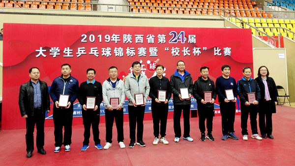 11月23日,由校黨委書記龍治剛、黨委副書記彭虎軍、副校長(zhǎng)劉寶盈、副校長(zhǎng)劉勇組成的代表隊(duì)參加了在長(zhǎng)安大學(xué)舉行的陜西省第二十四屆“校長(zhǎng)杯”乒乓球團(tuán)體對(duì)抗賽。我校獲得甲組(本科高校)第11名,龍治剛在參加團(tuán)體對(duì)抗賽第一、二階段比賽中獲得全勝,榮獲“優(yōu)秀運(yùn)動(dòng)員”獎(jiǎng)。