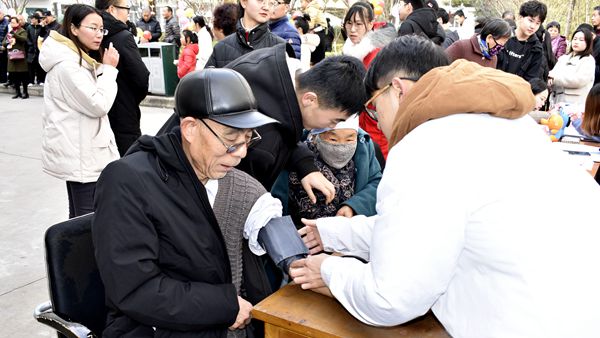 活動包括“藝術表演”“便民服務”和“趣味運動”三部分。師生在活動現場免費為小區居民提供膳食營養咨詢、冬季傳染病預防、量血壓等服務,通過精彩的文藝節目及現場互動,吸引了大量社區居民參與其中。