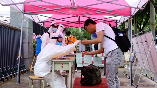 整個報到過程井然有序,學校疫情防控工作督查組全程監(jiān)督,現(xiàn)場工作人員嚴格落實學校要求,各個環(huán)節(jié)操作規(guī)范,所有流程無縫銜接。首日前來報到的畢業(yè)年級學生分別來自藝術(shù)學院、化材學院、生物學院和健康管理學院。回到闊別已久的校園,雖然戴著口罩,但同學們的眼神里都洋溢著激動與喜悅。