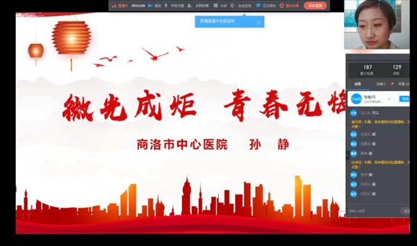為紀念南丁格爾誕辰200周年暨慶祝第109個“5.12”國際護士節,健康管理學院于5月11日晚,依托釘釘平臺,組織全院師生開展了以“講述抗疫英雄故事,傳承南丁格爾精神”為主題的線上紀念活動。活動特邀陜西省第一批援鄂醫護人員、商洛市中心醫院重癥醫學科護士長孫靜為全院師生做了“微光成炬 青春無悔”的報告。健康管理學院黨政負責人以及學院全體師生參加了本次活動。