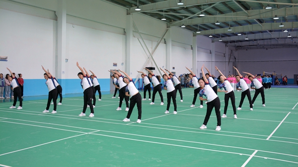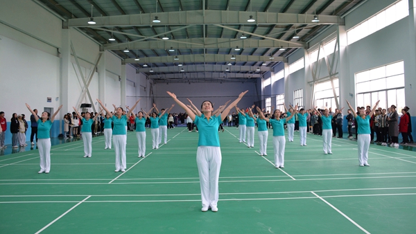 12支參賽隊伍邁著矯健的步伐依次入場,參賽隊員們服裝統(tǒng)一、精神抖擻、步伐整齊,隨著第九套廣播體操激情、歡快的音樂聲,舉手、抬腳、彎腰、轉(zhuǎn)身、跳躍,精神飽滿、動作有力、節(jié)奏合拍、隊形整齊,用優(yōu)美的身姿展現(xiàn)商洛學(xué)院教職工朝氣蓬勃的精神風(fēng)貌,獲得現(xiàn)場觀眾陣陣掌聲。