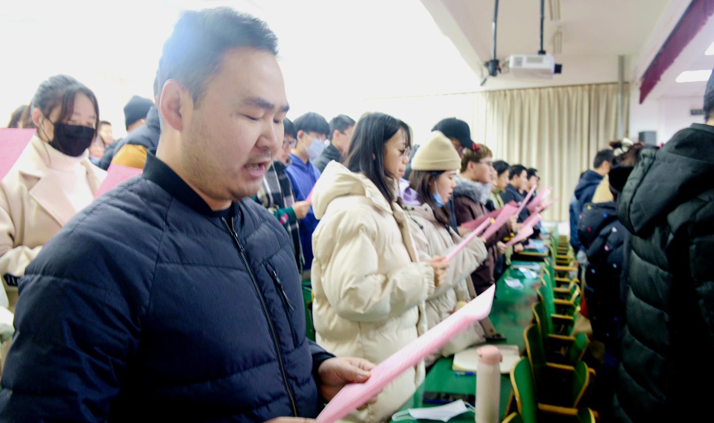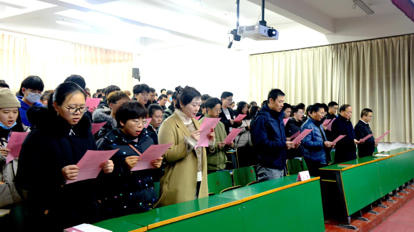 ——組織參加國家憲法日“憲法晨讀”活動。12月4日上午,校黨委副書記劉勇,宣傳部、學工部、團委負責人,和馬克思主義學院法學專業教師、二級學院師生代表190人,在1號樓報告廳二共同收看、參與了教育部普法網平臺直播的“憲法晨讀”活動。上午9:00,全體起立,跟隨直播現場行注目禮、唱國歌、跟讀憲法條款內容,與北京主會場同唱《憲法伴我們成長》歌曲,觀看了優秀學生代表的現場展演。大家表示,通過參加晨讀活動,進一步強化了憲法意識,增強了愛國主義情感,我們要帶頭學習、宣傳憲法內容,讓憲法精神在校園扎根。