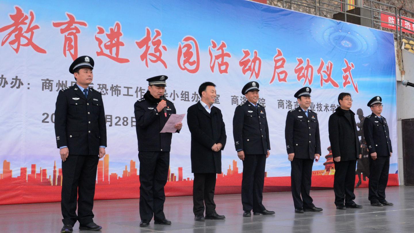 12月28日,“商洛市反恐怖宣傳教育進校園”活動在我校舉行啟動儀式,校黨委副書記彭虎軍,商州區副區長、商州公安分局黨委書記、局長柳禮群,商洛市反恐支隊、商州公安分局反恐大隊、巡特警大隊、城關派出所民警及我校師生代表共400余人參加活動。