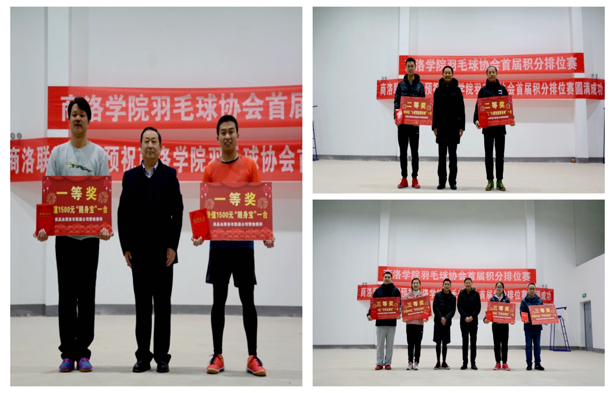 經(jīng)過激烈角逐,王健、劉彥春獲得一等獎(jiǎng);楊軍、張宗海獲得二等獎(jiǎng);李斌、葛建平、何佳佳、楊艷獲得三等獎(jiǎng)。我校校工會(huì)、體育教學(xué)研究部、羽毛球協(xié)會(huì)相關(guān)負(fù)責(zé)人,中國聯(lián)通公司商洛分公司、商洛市裕元商旅服務(wù)有限公司、商洛市羽人俱樂部相關(guān)人員一同觀看了比賽,并為獲獎(jiǎng)?wù)哳C發(fā)了榮譽(yù)證書和獎(jiǎng)品。