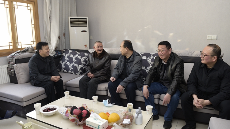 2月10日,商洛市政協主席高健、中共商洛市委直屬機關工作委員會書記王浩一行來到我校,看望慰問退休老教師王明昌,為老人送上慰問金和新春祝福,并代表市委書記郭永紅、市長鄭光照向王明昌和家人表示誠摯的問候。校黨委副書記彭虎軍、副校長郭瑾等一同看望。