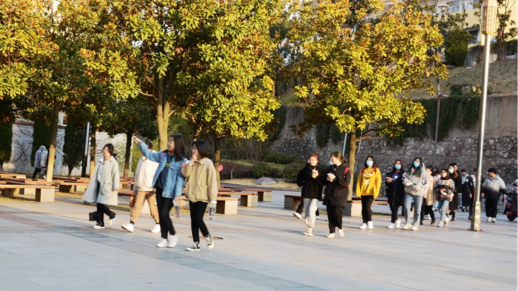 莘子園,學生們踏著春日的陽光,呼吸著新鮮空氣,三五成群地走在上課路上,以更加飽滿的精神、倍加努力的斗志,投入到新學期的學習中。