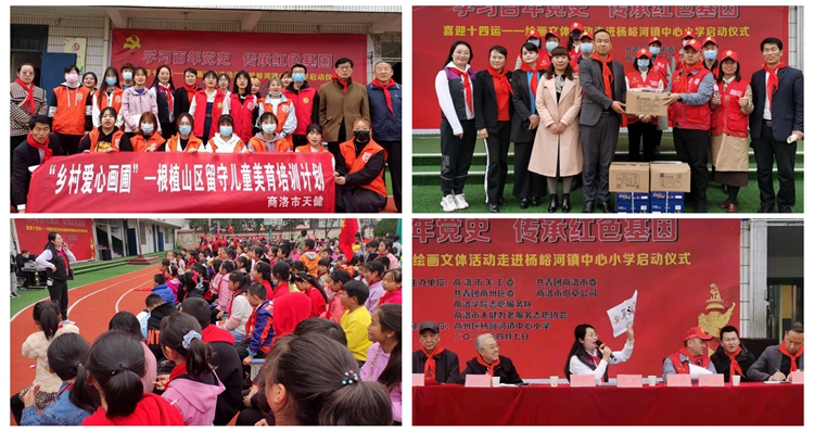 4月7日下午,商洛市商州區楊峪河鎮中心小學舉辦“學習百年黨史,傳承紅色基因”喜迎十四運—繪畫文體活動啟動儀式,商洛市關工委、共青團商洛市委、共青團商州區委和我校工會有關負責人出席活動,我校志愿服務隊師生志愿者和商洛市天健為老志愿服務隊、商洛市煙草公司志愿服務隊一同參加活動,開展了黨史和“十四運”宣講,并為孩子們贈送了繪畫用品。