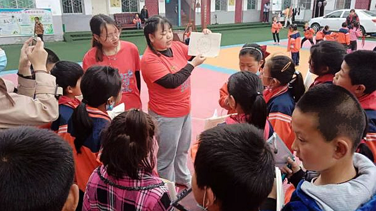 商州區(qū)牧戶關(guān)街道小學共有留守兒童100余名。活動中,我校藝術(shù)學院師生為小朋友們進行了簡筆畫教學、繪畫指導,并將一批圖畫本、鉛筆、橡皮等繪畫學習用品用具親自送到每位學生的手中,激發(fā)了他們對繪畫的興趣,為他們送去“鄉(xiāng)村愛心畫圃”的關(guān)懷與關(guān)愛。