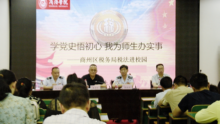 為深入開展“我為師生辦實事”實踐活動,向師生宣傳普及稅法知識,提升教師稅收意識,幫助畢業(yè)生了解創(chuàng)業(yè)就業(yè)扶持政策和各項減免稅收政策,6月1日下午 ,我校聯(lián)合商州區(qū)稅務局開展了“學黨史悟初心 我為師生辦實事”稅法宣傳進校園活動。商州區(qū)稅務局副局長李俊利,稅務專家朱興華向師生講解稅務知識并現(xiàn)場答疑解惑。校財務處處長李云剛、科技處副處長郭耀東,學生處相關負責人、各二級學院教師代表及畢業(yè)生代表100余人參加活動。