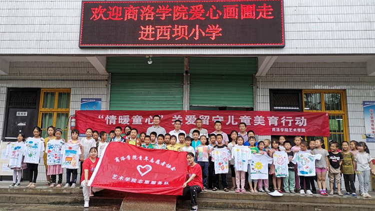 7月2日,我校承擔的公益項目“鄉村愛心畫圃”走進了洛南縣保安鎮西壩小學,項目指導教師、藝術學院教師李斌、王淦卿和李萍及項目成員參加活動。